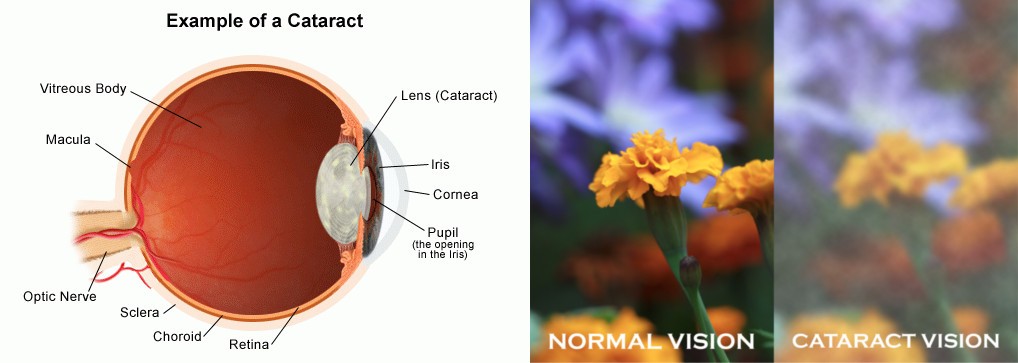 A cataract is any cloudiness or opacity of the natural lens of the eye, which is normally crystal clear. There are many types of cataracts. Some cataracts are small and do not interfere with vision. Other cataracts are large and cause severe vision loss.